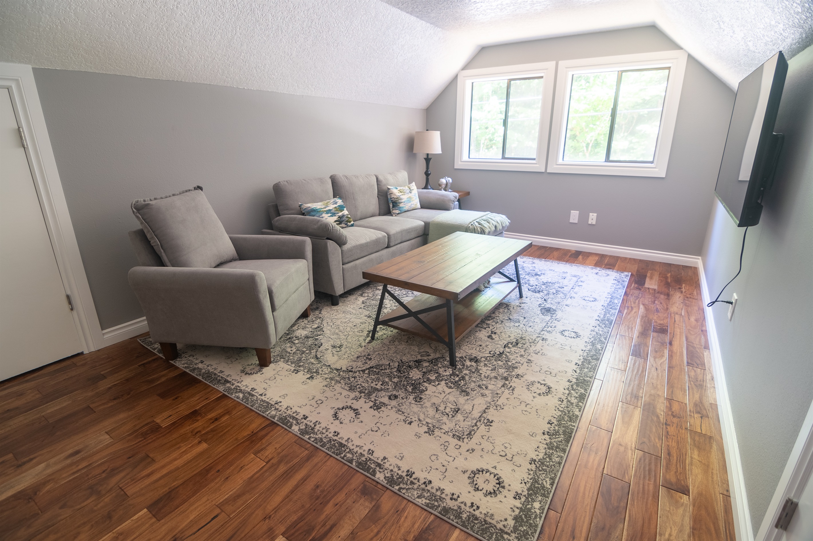 Want to stay up late? Make your way up to the loft and watch your favorite streaming service on our 50” television. You can also peruse the books we have available in our ‘free library’. Feel free to take one, leave one, or just enjoy a good book during your stay. If you are craving technology, the cabin has high-speed internet. There's now a wall-mounted arcade that will provide fun for many hours.